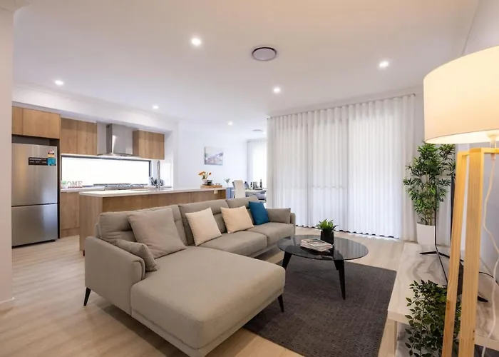 A full kitchen is well equipped with an electric kettle, a refrigerator, and an oven. The 2-bedroom Brand New 4Bs Home Near Shops And Park At Greenbank is also within 10 minutes' walk of Pub Ln at Greenbank Shopping Centre bus stop.